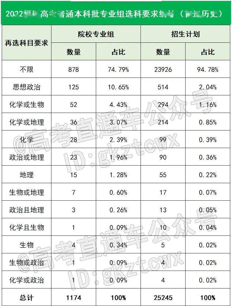首选历史的福建考生无论选哪个组合都不会太吃亏,因为不限再选科目的招生计划占比高达 94.78%,从这一点来看,历史生比起物理生的报考自由度更大。