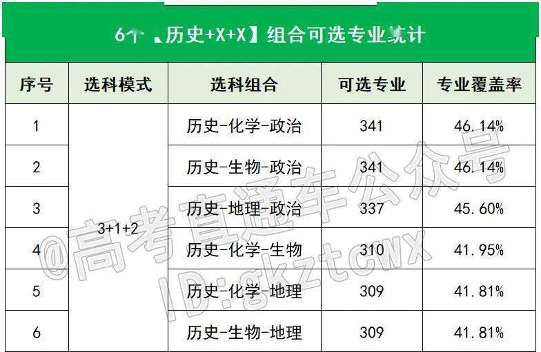 历史+化学+生物:化学与生物的结合,从学科思维角度来说跨度不大,思维转换较小,但失去了政治的优势,尤其在提前批报考中没有太大的选择权。