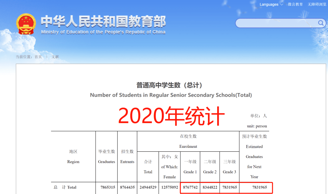 统计人数只是报名人数的73%,剩下的27%的人从哪里来的呢?其实这里面还包含了对口招生、高职单招(中职生的高职高考)、复读等人数。