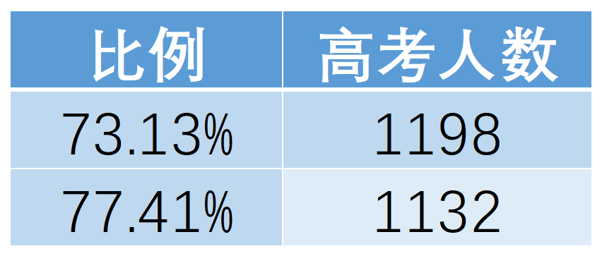 按照73%—77%比例范围来看,2023年高考报名人数范围在1132—1198万之间。