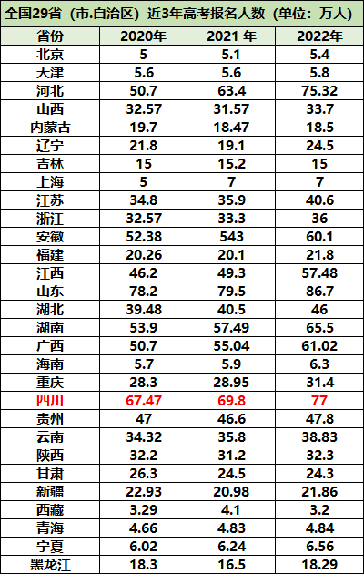 不过,在刚刚过去的2022年高考中,官方并未公布全省的报名人数,只公布了“普通高考报考96万,对口招生报考20万”的有关数据。不过,由于普通高考已经达到了96万人,远超2021年和2020年同期,因此也完全有理由相信2022年的高考报名人数接近或者超过了130万。