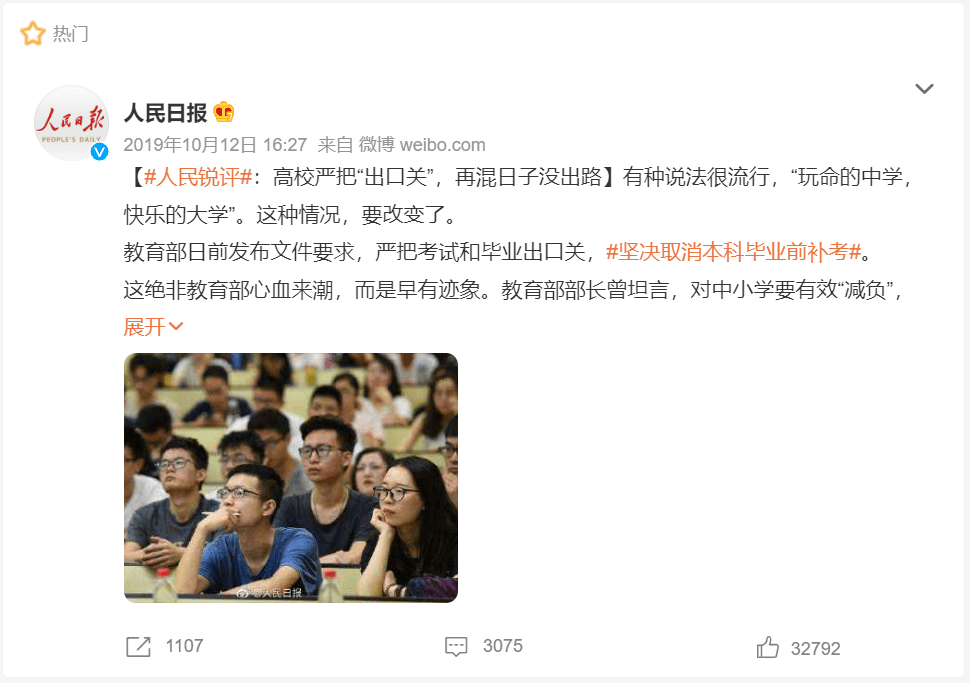 2019年教育部出台系列政策,狠抓高校教育教学质量 《人民日报》评论:高校严把“出口关”,再混日子没出路