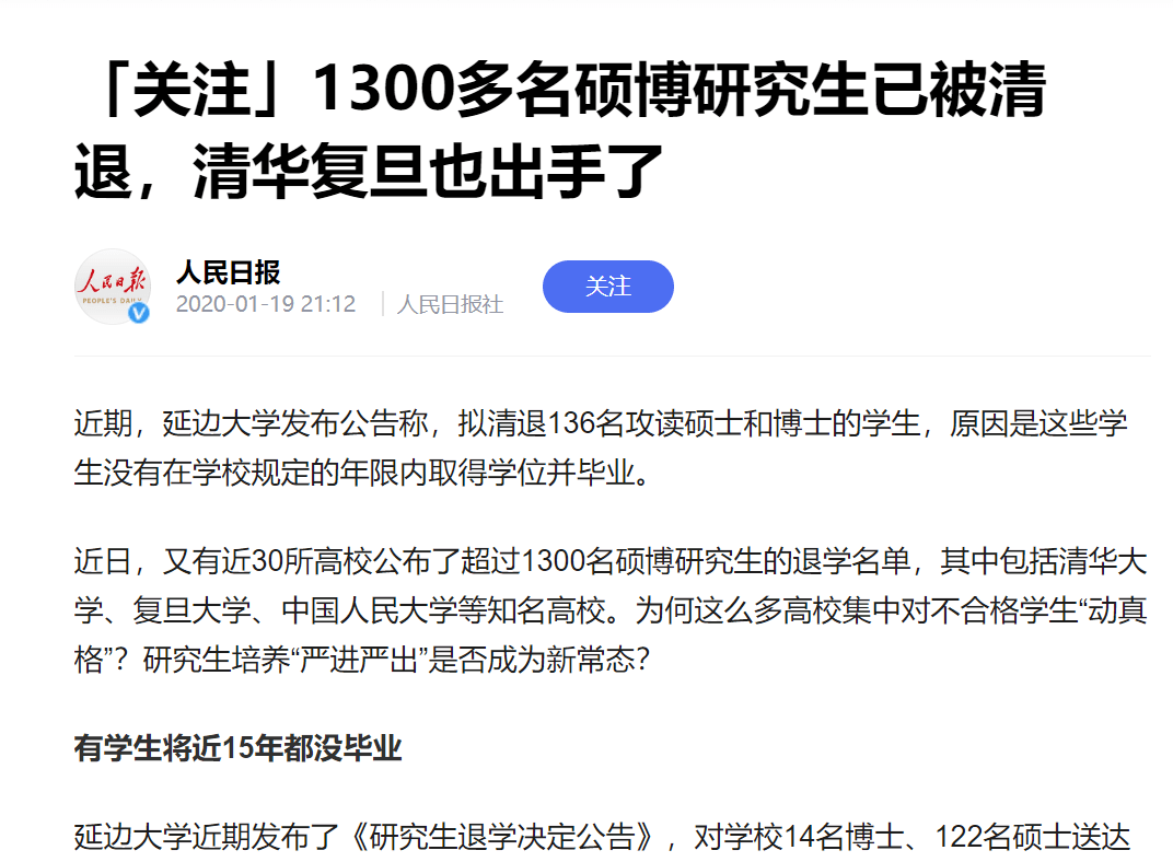 近几年高校纷纷出手,落实“严进严出”,清退达到最长学习年限仍未毕业的学生,其中包括不少名校。