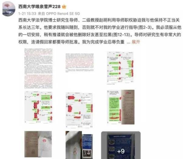一位211女博士实名举报自己的导师,聊天内容毁三观。小刘(化名)是某211高校法学院的博士研究生,赵老师(化名)是该校法学院教授,也是学术委员会主任,在专业方面有很强的实力。