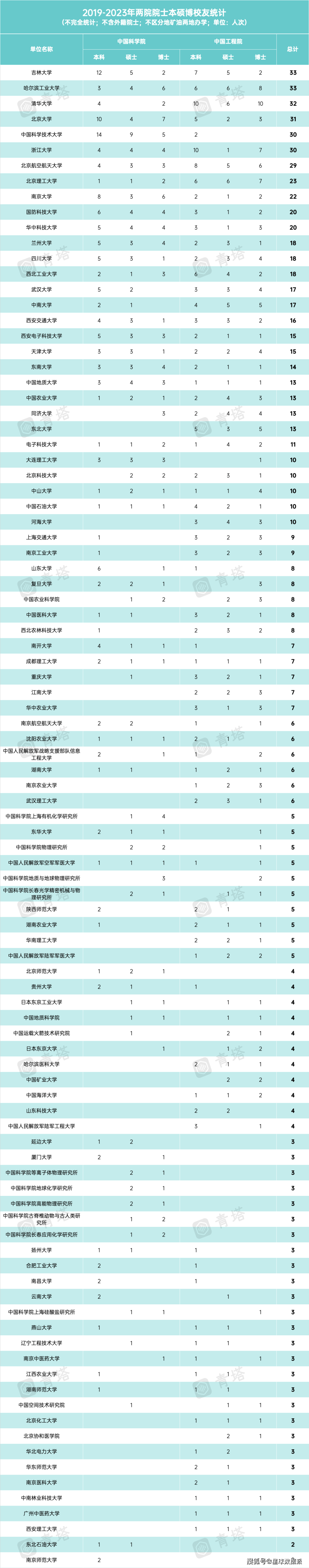 这些两院院士的选举产生,是我国科学技术发展的重要里程碑,也是我国科技创新实力的重要体现。对于想要进入顶尖高校就读的学生来说,了解这些院士的求学经历对他们未来的求学道路具有重要的参考价值。本文整理了2019-2023年度新增的两院院士本科、硕士及博士毕业院校,以供大家参考。