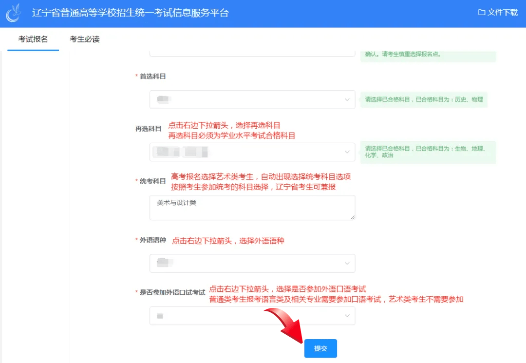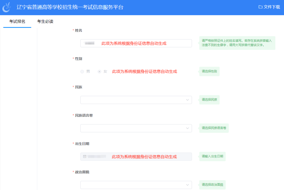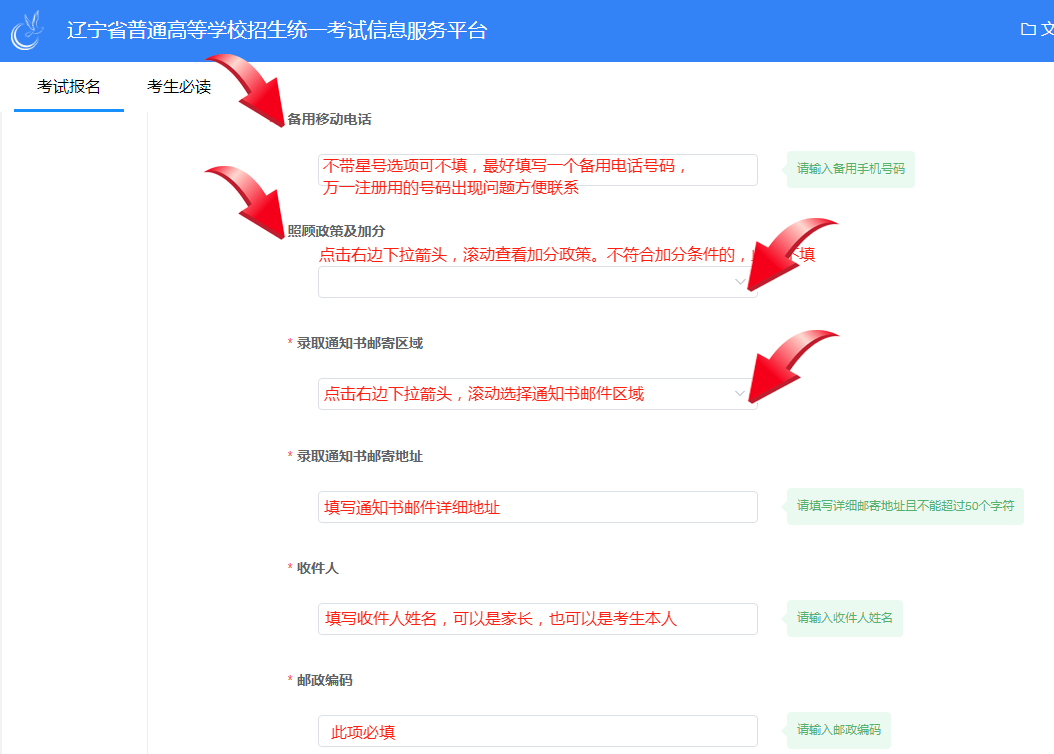 考生照片为高考报名提交后现场采集,此页面需要向下滚动填写完成。
