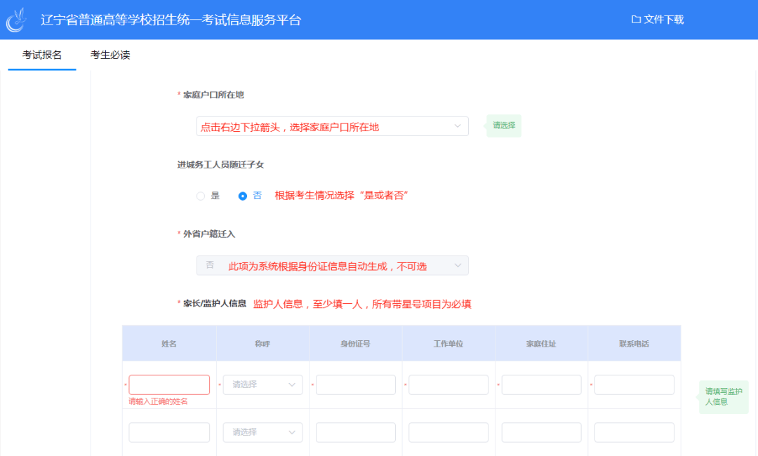 ③保存信息时,报名系统自动检查校验各数据项,对未填或不合法项进行相应的提示,考生须按提示进行修改。
