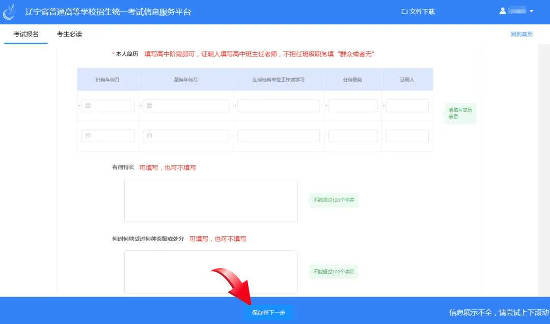 3.系统保存报名信息需要一定时间。系统保存时间长短受网络和在线人数压力影响,保存时间稍长的不要频繁刷新网页、不要随便关闭网页,系统会自动跳入后续页面。