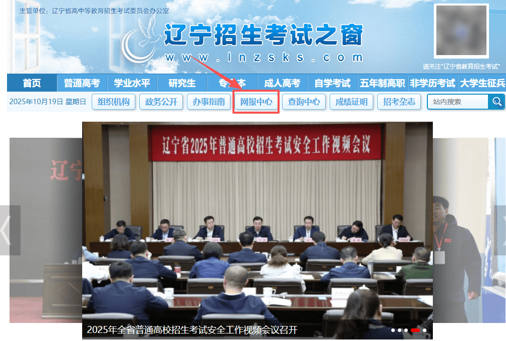 进入“辽宁招生考试之窗”官网后点击:网报中心