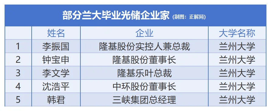在光伏行业里,兰大校友也不只是仅存在于隆基绿能这一家企业。