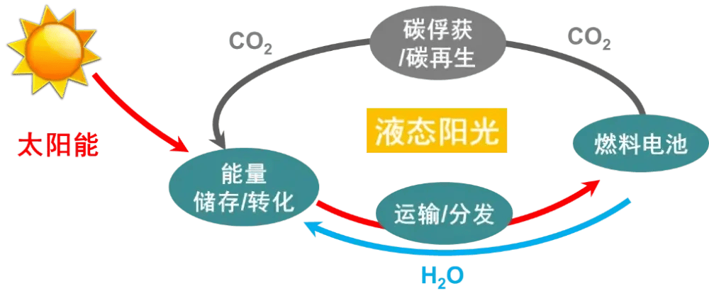 这条创新的技术路径是先用太阳能发电,并用电解水技术制备“绿氢”,随后让氢气和二氧化碳反应生成甲醇。这一过程巧妙地将太阳能以化学能的形式储存在液态甲醇中,最终在应用端通过甲醇重整技术现场释放氢气,因此被称为“液态阳光”。