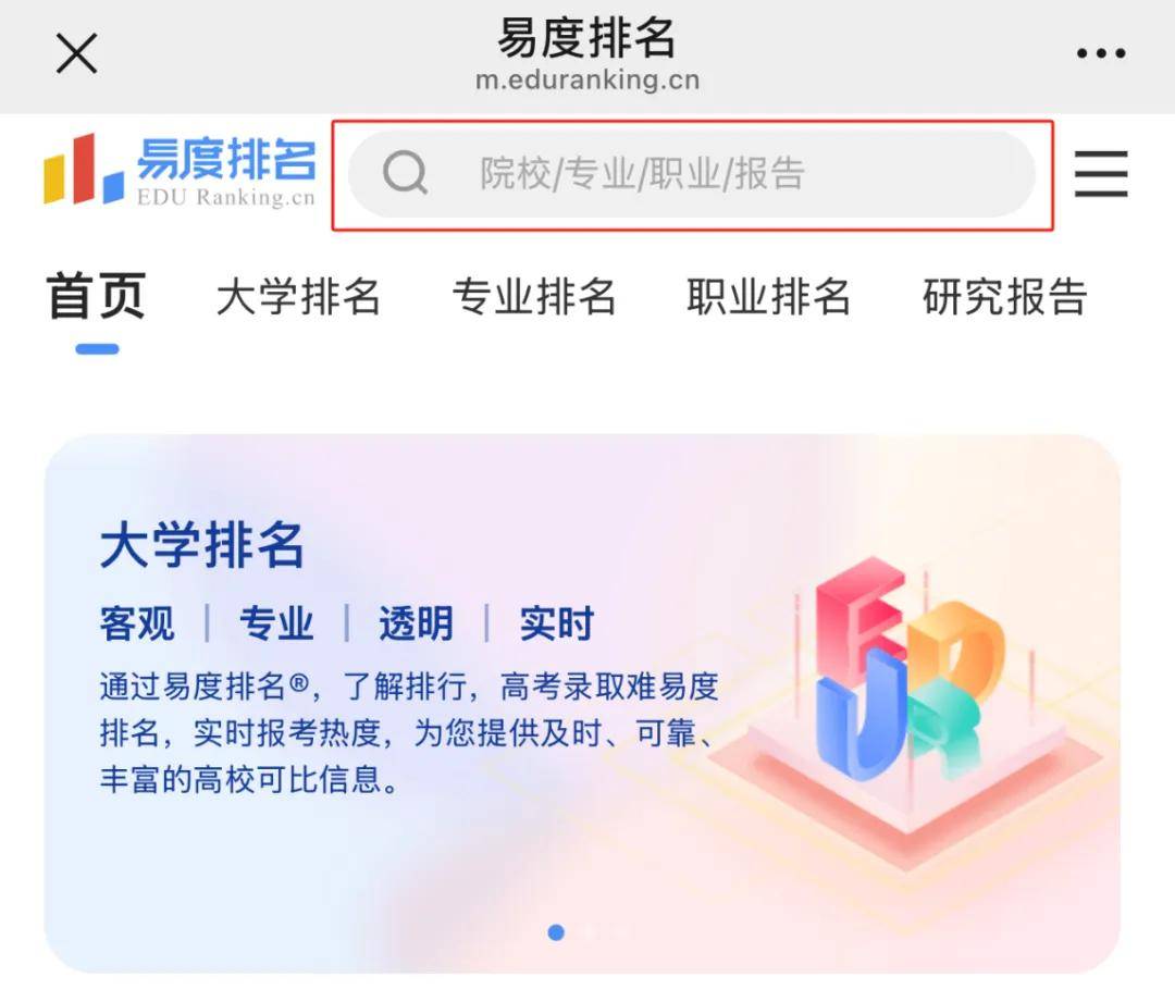 2、点击上方搜索栏,输入你想知道排名的大学名称。
